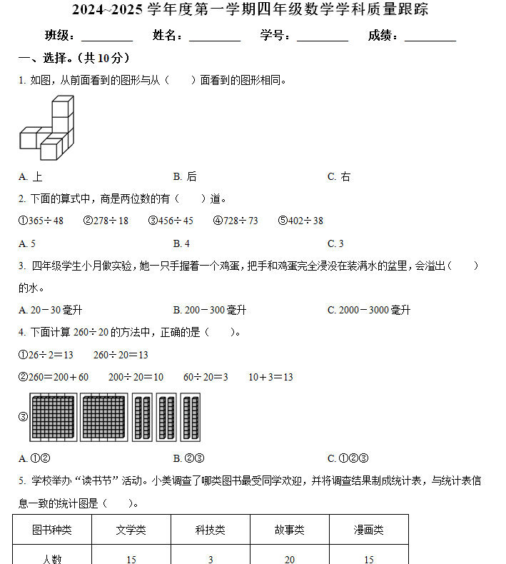 江苏100教学资源网 四上 2024-2025学年江苏省苏州市高新区苏教版四年级上册期中考试数学试卷(含解析) https://www.jiangsu100.com/17124.html