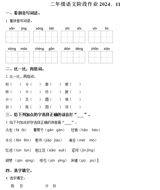 - 江苏省泰州市兴化市2024-2025学年二年级上学期期中阶段作业语文试卷(含答案) 2025-11-11