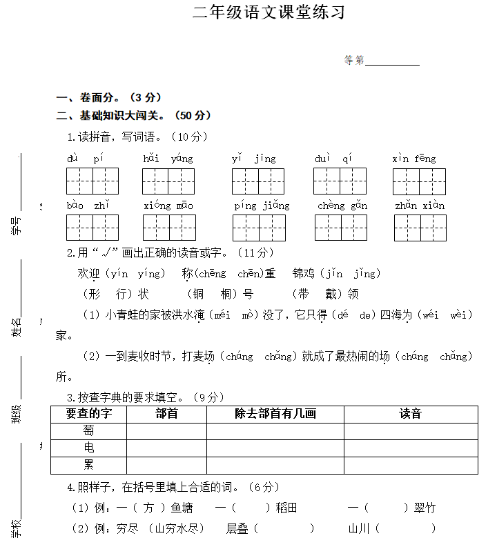 江苏100教学资源网 二上 江苏省盐城市盐都区二小教育集团2024-2025学年二年级上学期11月期中语文试题(含答案) https://www.jiangsu100.com/17405.html