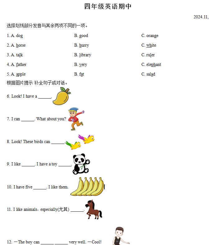 江苏100教学资源网 四上 2024-2025学年江苏省南通市开发区多校译林版(三起)四年级上册期中测试英语试卷(含解析) https://www.jiangsu100.com/17808.html
