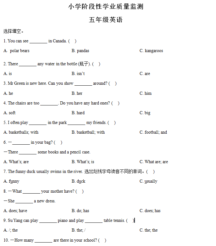 江苏100教学资源网 五上 2024-2025学年江苏省连云港市东海县译林版(三起)五年级上册期中测试英语试卷(含解析) https://www.jiangsu100.com/17873.html