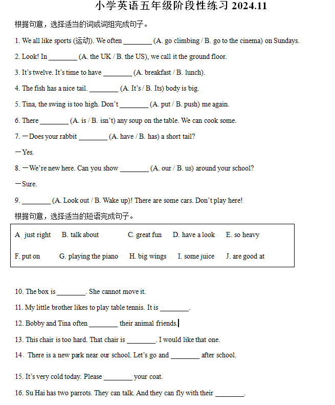 江苏100教学资源网 五上 2024-2025学年江苏省南通市崇川区多校译林版(三起)五年级上册期中测试英语试卷(含解析) https://www.jiangsu100.com/17888.html