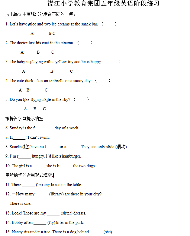 江苏100教学资源网 五上 2024-2025学年江苏省泰州市泰兴市部分学校译林版(三起)五年级上册期中测试英语试卷(含解析) https://www.jiangsu100.com/17897.html