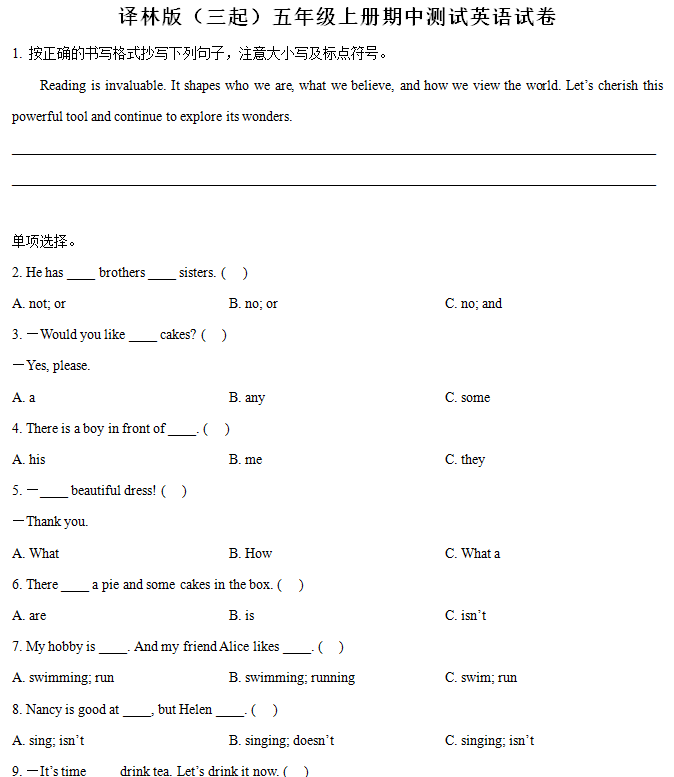 江苏100教学资源网 五上 2024-2025学年江苏省泰州市兴化市译林版(三起)五年级上册期中测试英语试卷(含解析) https://www.jiangsu100.com/17900.html