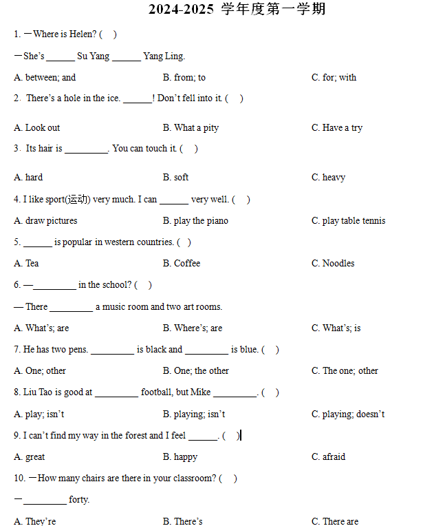- 2024-2025学年江苏省徐州市丰县译林版(三起)五年级上册11月期中测试英语试卷(含解析) 2025-11-13