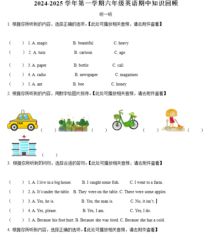 江苏100教学资源网 六上 2024-2025学年江苏省淮安市清江浦区译林版(三起)(2012)六年级上册期中测试英语试卷(含解析+听力音频) https://www.jiangsu100.com/17960.html