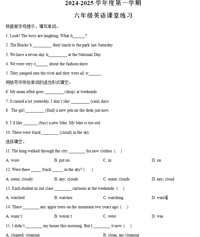 2024-2025学年江苏省盐城市东台市第五联盟译林版(三起)六年级上册10月期中测试英语试卷(含解析)