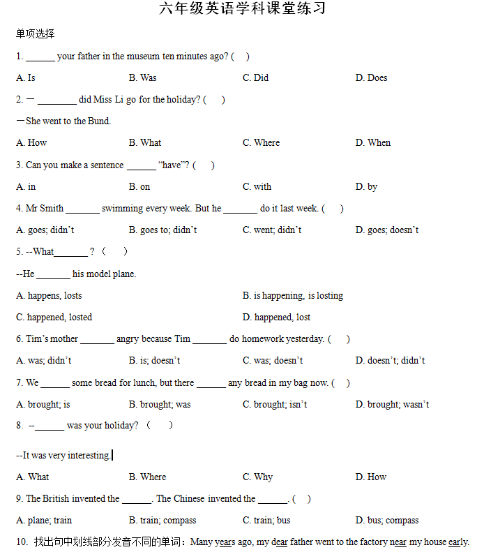 - 2024-2025学年江苏省徐州市邳州市译林版(三起)六年级上册11月期中测试英语试卷(含解析) 2025-11-14