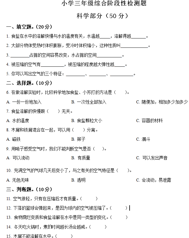 江苏100教学资源网 三上 2024-2025学年江苏省宿迁市沭阳县教科版三年级上册期中考试科学试卷(含解析) https://www.jiangsu100.com/18078.html