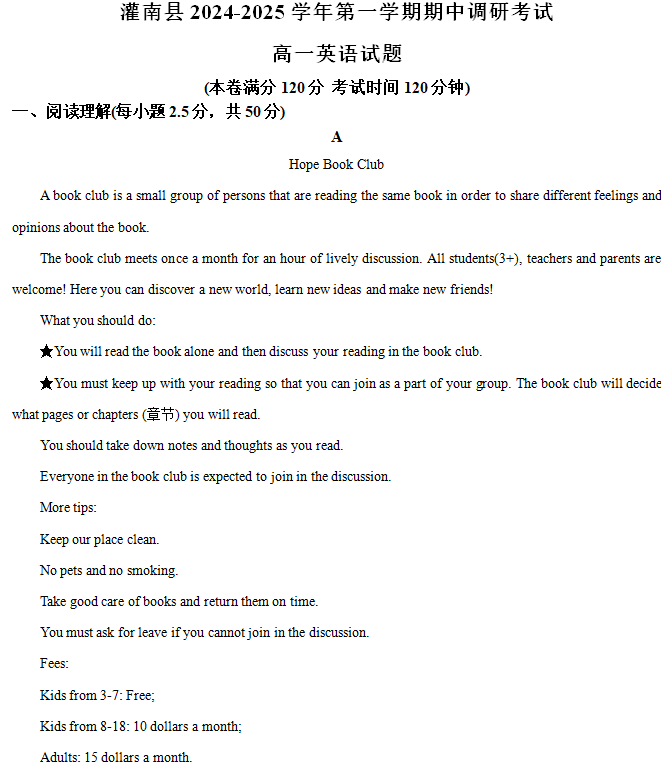 江苏100教学资源网 高一上 江苏省连云港市灌南县2024-2025学年高一上学期11月期中英语试题(含解析) https://www.jiangsu100.com/18436.html