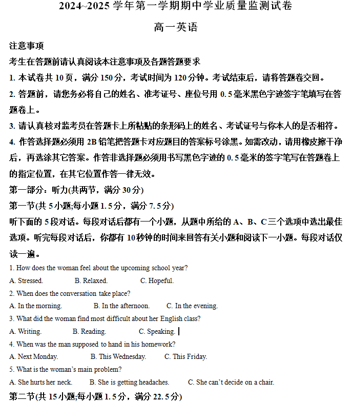 江苏100教学资源网 高一上 江苏省南通市海安高级中学2024-2025学年高一上学期期中考试英语试题(含解析) https://www.jiangsu100.com/18457.html