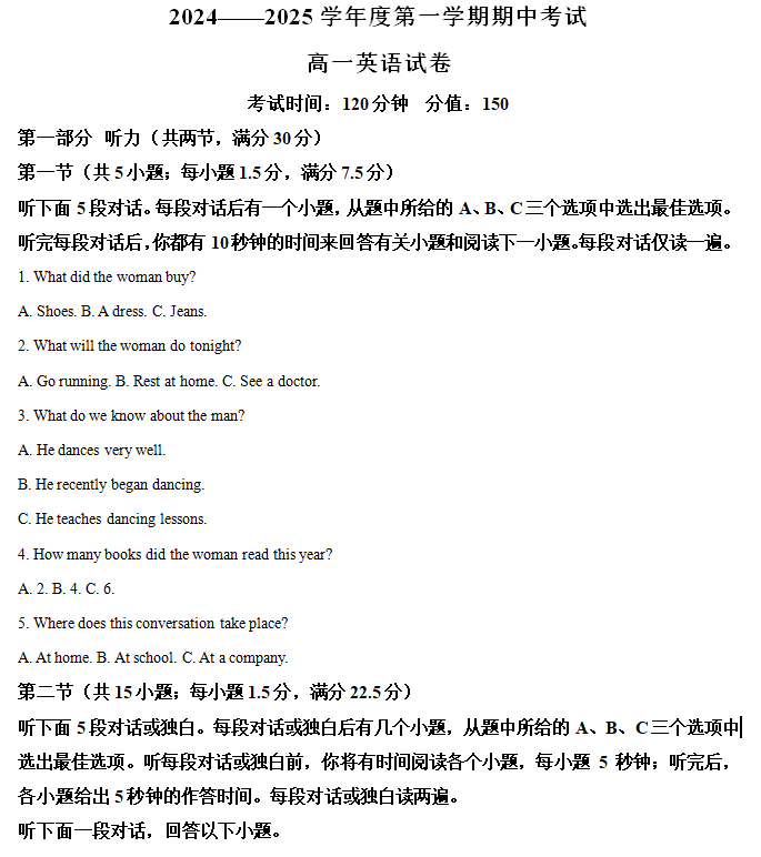 江苏100教学资源网 高一上 江苏省无锡市锡东高级中学2024-2025学年高一上学期期中考试英语试题(含解析) https://www.jiangsu100.com/18502.html