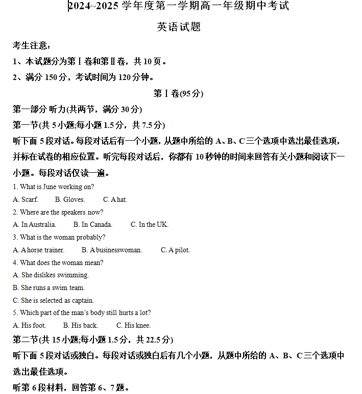 江苏100教学资源网 高一上 江苏省盐城市响水中学,清源高中2024-2025学年高一上学期期中联考英语试题(含解析) https://www.jiangsu100.com/18523.html