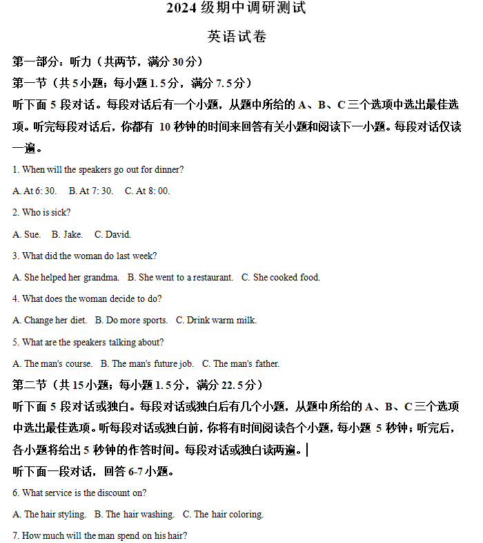 江苏100教学资源网 高一上 江苏省扬州中学教育集团树人学校2024-2025学年高一上学期期中考试英语试题(含解析) https://www.jiangsu100.com/18554.html