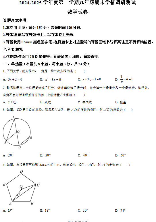 江苏100教学资源网 九上 江苏省宿迁市宿城区新区教学共同体2024-2025学年九年级上学期1月期末数学试题(含解析) https://www.jiangsu100.com/19418.html