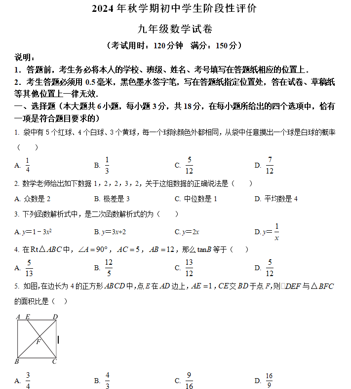 - 江苏省扬州市广陵区2024-2025学年九年级上学期期末调研数学试题(含答案) 2025-12-27