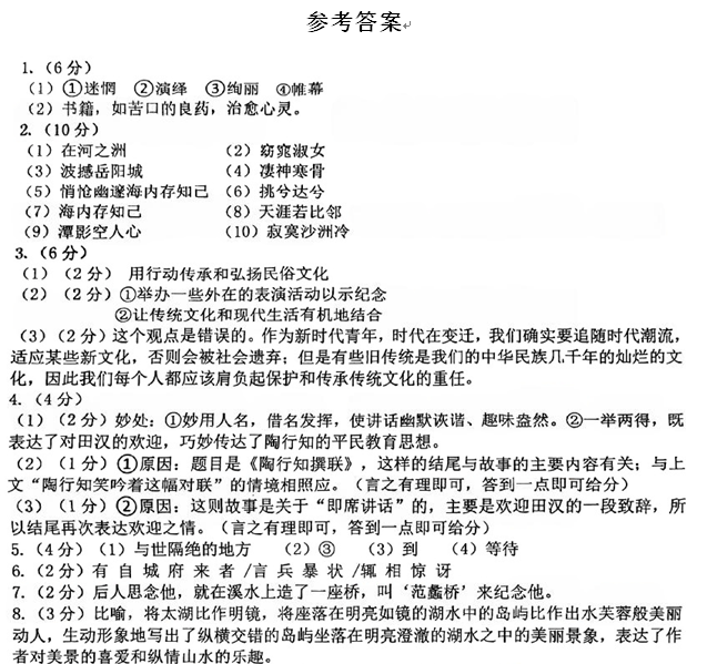 小语:“山光悦鸟性,(9)________。”在山光水影中,常建心清如水,领悟禅意。