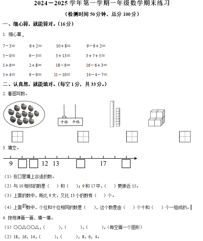 - 江苏省徐州市2024-2025学年一年级上学期期末数学试题(含答案) 2025-12-29