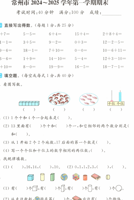 - 江苏省常州市2024-2025学年一年级上学期期末数学试题(含答案) 2025-12-29