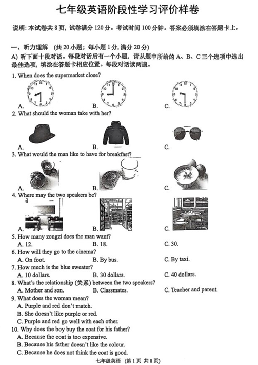 江苏100教学资源网 七上 江苏省镇江市句容市2024_2025学年七年级上学期期末统考英语试卷(含答案+听力音频) https://www.jiangsu100.com/21763.html