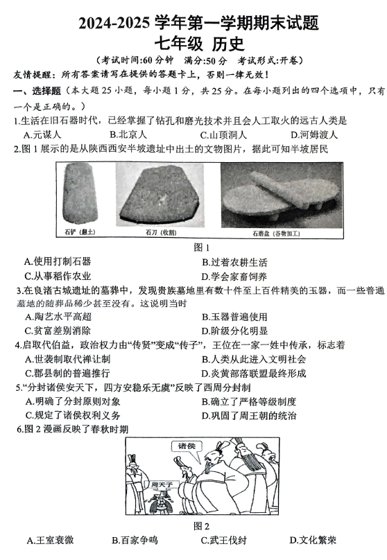 江苏100教学资源网 七上 江苏省扬州市仪征市2024-2025学年统编版七年级上学期历史期末考试卷(含答案) https://www.jiangsu100.com/23274.html