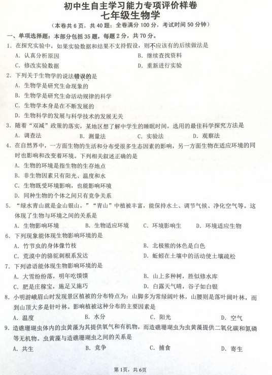 - 江苏省扬州市江都区2024-2025学年七年级上学期期末生物试题(含解析) 2026-01-10