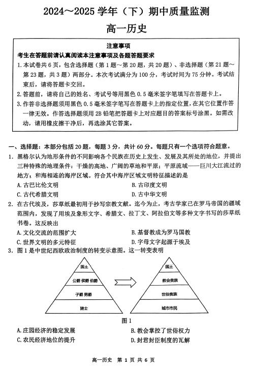 江苏100教学资源网 高一下 江苏省镇江市丹阳市2024-2025学年高一下学期期中考试历史试题(含答案) https://www.jiangsu100.com/30929.html