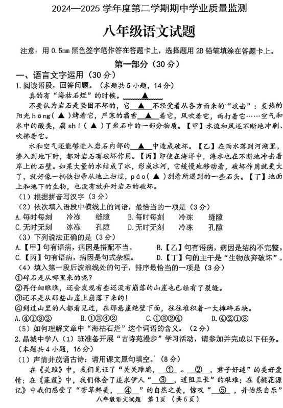 - 江苏省镇江市2024-2025学年八年级下学期期中语文试题(含解析) 2026-04-19