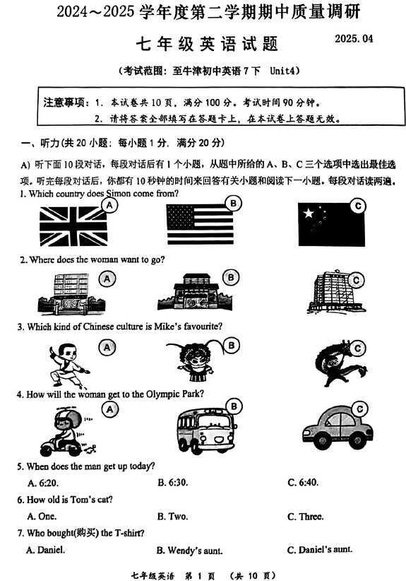 - 江苏省扬州市梅岭集团2024-2025学年七年级下学期4月期中英语试题(含解析+听力音频) 2026-04-20