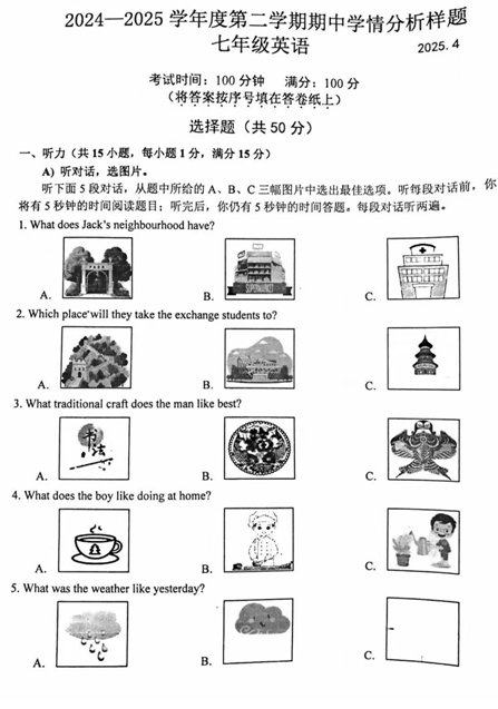 江苏100教学资源网 七下 江苏省南京市浦口新区浦口外国语学校2024-2025下学期七年级英语期中考试试卷(无答案) https://www.jiangsu100.com/32353.html