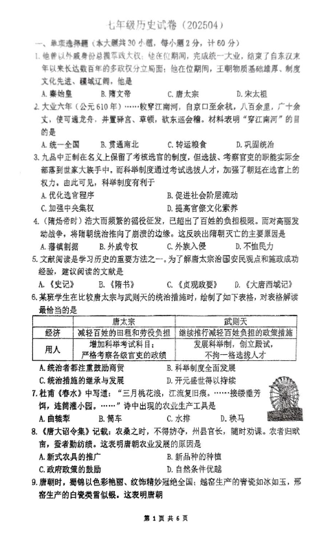 江苏100教学资源网 七下 江苏省镇江市丹阳市2024-2025学年七年级下学期4月期中历史试题(无答案) https://www.jiangsu100.com/32377.html