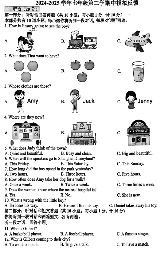 - 2024-2025学年度江苏省苏州市景范中学七年级下学期期中考试英语试卷(含答案) 2026-04-19