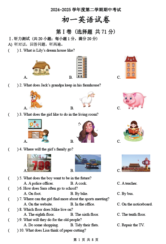 江苏100教学资源网 七下 江苏省淮安市淮安经济技术开发区开明中学2024-2025学年七年级下学期4月期中考试英语试题(含答案+听力音频) https://www.jiangsu100.com/32408.html