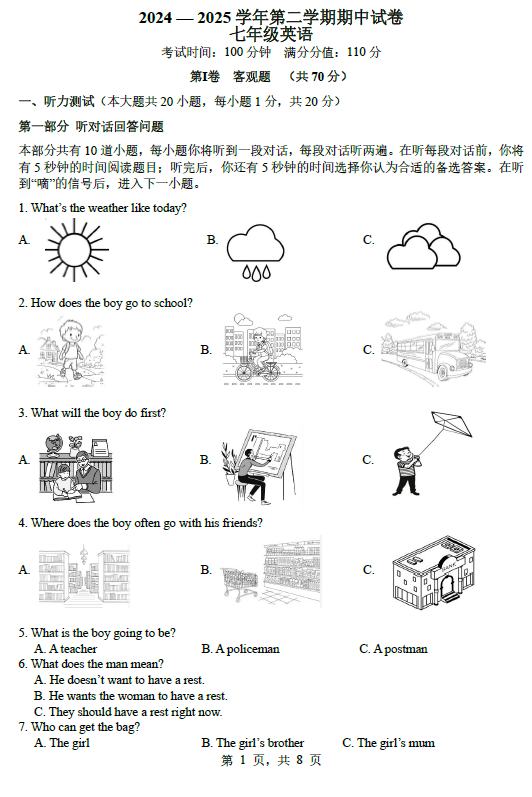 江苏100教学资源网 七下 江苏省无锡市积余教育集团学校2024-2025学年七年级下学期期中考试英语试卷(含答案+听力音频) https://www.jiangsu100.com/32518.html