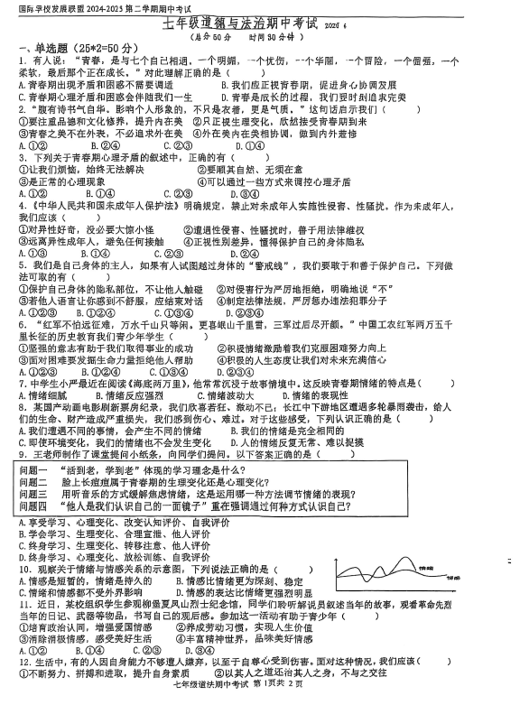 江苏100教学资源网 七下 江苏省扬州市宝应县国际联盟校2024-2025学年七年级下学期4月期中道德与法治试题(无答案) https://www.jiangsu100.com/33143.html