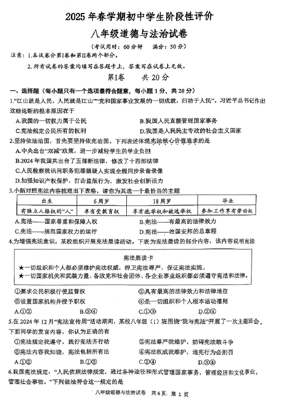 江苏100教学资源网 八下 江苏省泰州市兴化市2024-2025学年八年级下学期期中考试道德与法治试题(含答案) https://www.jiangsu100.com/33307.html