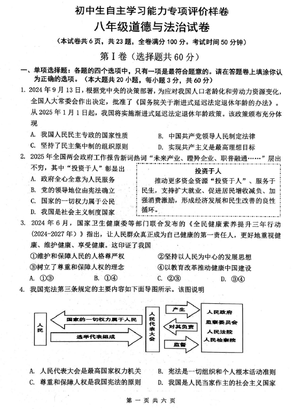 江苏100教学资源网 八下 江苏省镇江市丹徒区2024-2025学年八年级下学期4月期中道德与法治试题(含答案) https://www.jiangsu100.com/33335.html