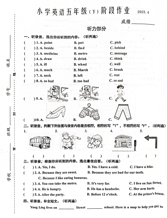 - 江苏省盐城市建湖县2024-2025学年五年级下学期期中英语试题(含答案) 2026-04-27