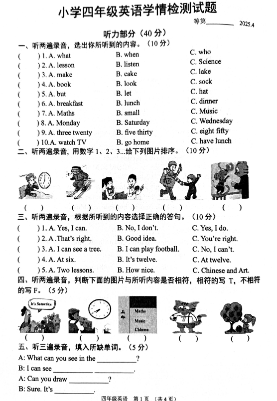 - 江苏省宿迁市宿城区2024-2025学年四年级下学期4月期中英语试题(含答案+听力音频) 2026-04-27