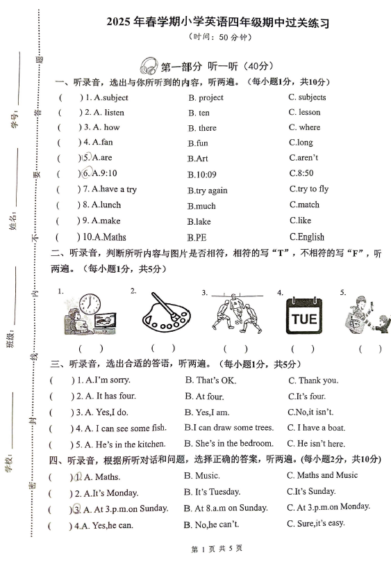 - 江苏省宿迁市宿城区2024-2025学年四年级下学期4月期中英语试题(含答案+听力音频) 2026-04-27