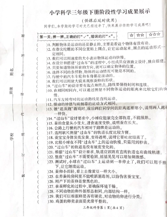 - 江苏省徐州市泉山区2024-2025学年三年级下学期4月期中科学试卷(无答案) 2026-04-27
