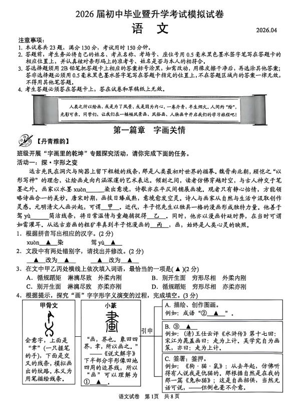- 2025-2026学年江苏省苏州市振华中学中考一模语文试题(无答案) 2026-04-28