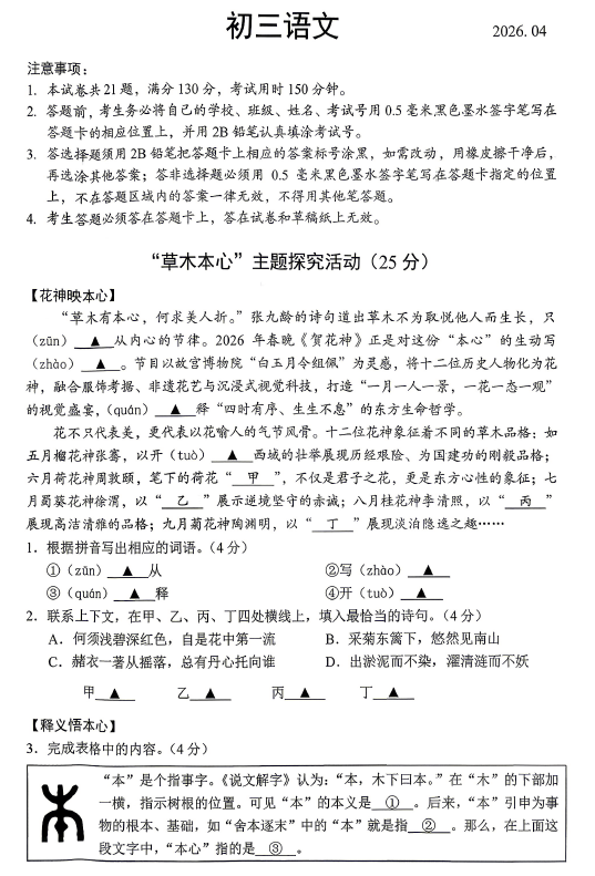 - 2025-2026学年江苏省苏州市振华中学中考一模语文试题(无答案) 2026-04-28