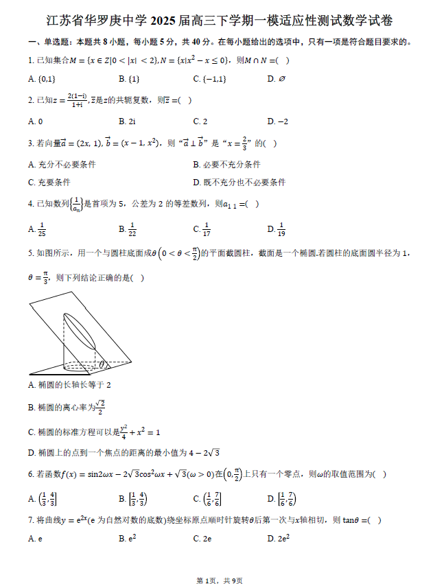 江苏100教学资源网 高三下 江苏省常州市华罗庚中学2024-2025学年高三(下)一模适应性测试数学试卷(含答案) https://www.jiangsu100.com/35025.html