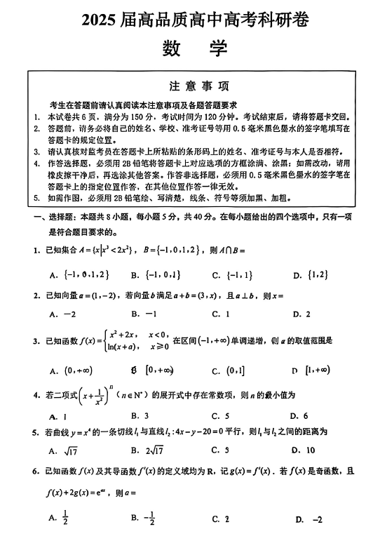 - 江苏省南通市高品质高中2025届高三下学期5月高考科研卷数学(含答案) 2026-04-28