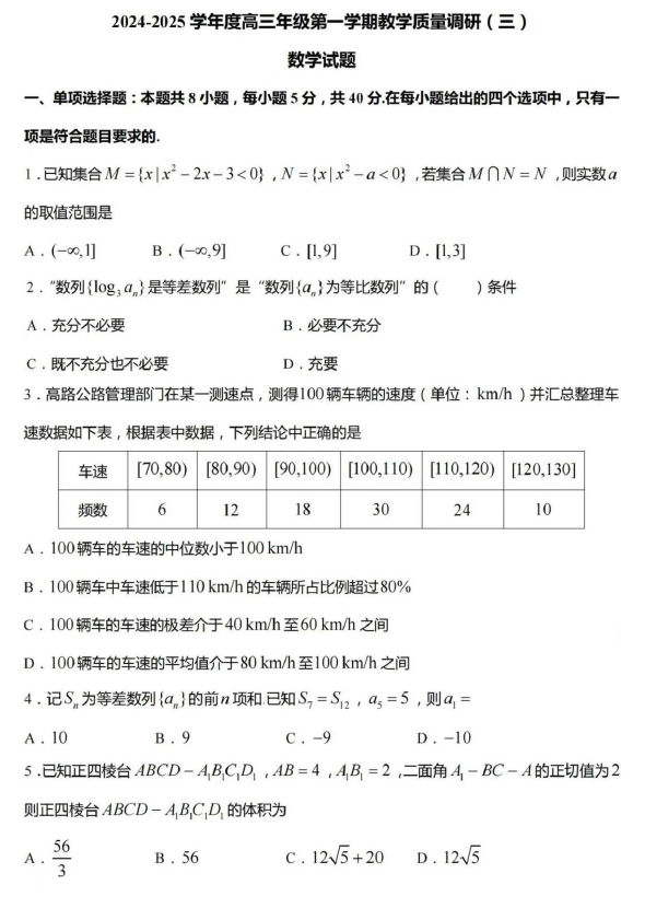 - 江苏省南通市如皋中学2024-2025学年高三上学期教学质量调研(三)数学试卷(含答案) 2026-04-28