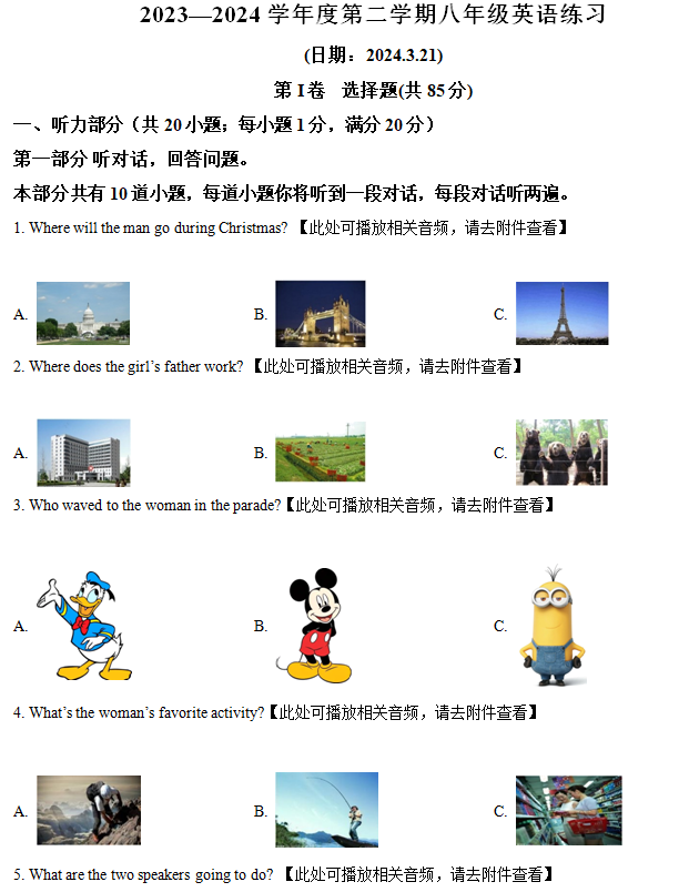 江苏100教学资源网 八下 江苏省宿迁市沭阳县怀文中学2023-2024学年八年级下学期第一次月考英语试题(含解析) https://www.jiangsu100.com/4148.html