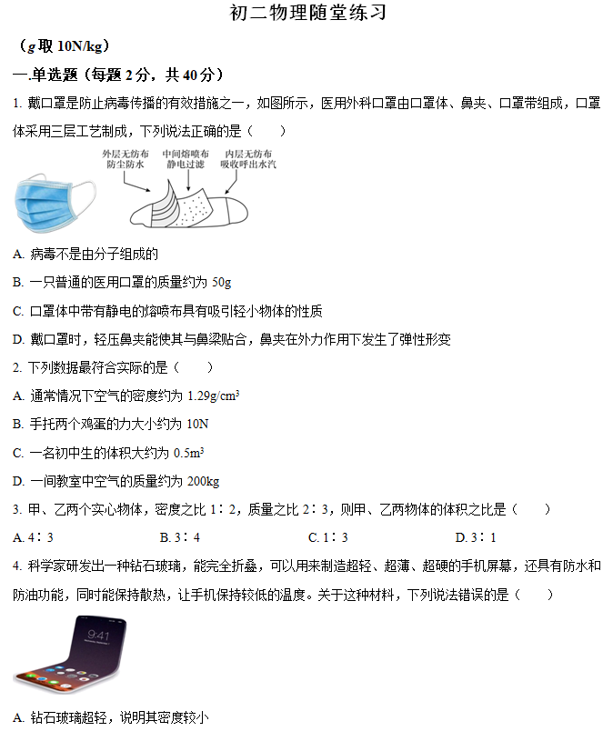 江苏100教学资源网 八下 江苏省淮安市开明中学2023-2024学年八年级下学期5月月考物理试题(含解析) https://www.jiangsu100.com/4567.html