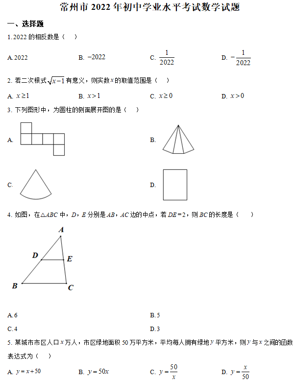 江苏100教学资源网 数学 2022年江苏省淮安市中考数学真题(含解析) https://www.jiangsu100.com/6738.html