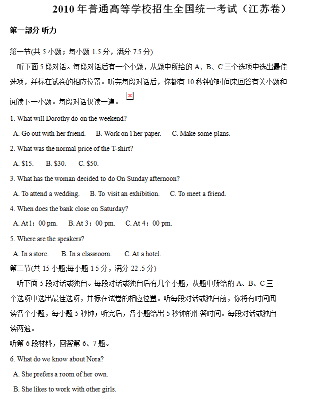 江苏100教学资源网 英语 2010年江苏省高考英语真题试卷(含解析+听力音频) https://www.jiangsu100.com/7952.html